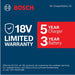 - Bosch 18V chargers are covered by a five year limited warranty; Bosch 18V batteries are covered by a three year limited warranty - for details, visit https://rb-pt.io/PowerToolWarranty or call 1-877-BOSCH99