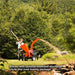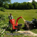 A dedicated self-feeding chipper that will power through branches up to 4.75" in diameter. High discharge makes for easy collection of chips and we offer an extended discharge chute option. Pin hitch included standard and road towing optional. Electric Start model.