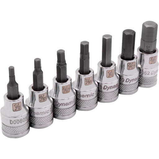 View full detailsDynamic 3/8" Drive 7 pc. SAE Standard Length Hex Socket Set - 1/8" - 3/8"'