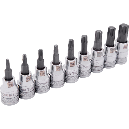 View full detailsDynamic 3/8" Drive 9 pc. Standard Length Torx Socket Set