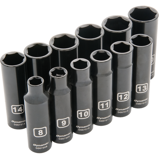 View full detailsDynamic 3/8" Drive, 12 Piece 6 Point Deep Impact Metric Socket Set, 8mm - 19mm