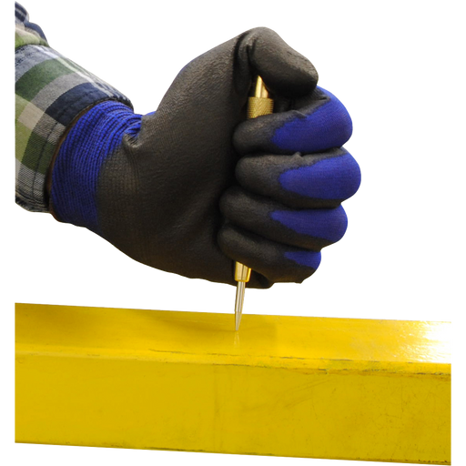 Corrosion-resistant brass body with non-slip knurled grips. Spring loaded designed delivers a high-impact strike when tip pressed against any work...