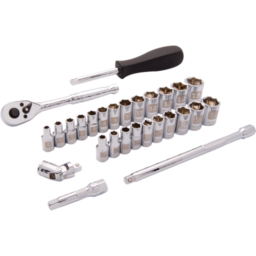 View full detailsDynamic 1/4" Drive, 28 Piece 6 Point Standard SAE/Metric Socket Set, 3/16" - 9/16", 4mm - 15mm
