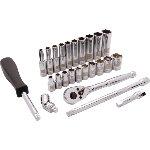 View full detailsDynamic 1/4" Drive, 25 Piece 6 Point Standard/Deep SAE Socket Set, 3/16" - 9/16"