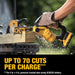- Up to 70 cuts per charge on a 4" x 4" pressure treated pine using DCB230 battery