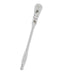 The MILWAUKEE® 3/8” Drive 12” Flex Head Ratchet with a 4⁰ arc swing provides better access and is more adaptable to working in spaces with different angles. The ratchet head can flex to 9 different positions and has a lever to lock the head in place. The extended handle length offers increased leverage for stubborn nuts and bolts, a slim profile design, and a flush directional lever for better accessibility. The all-chrome finish makes cleaning the extended-reach ratchet easy. This ratchet is backed by Milwaukee's Mechanics Hand Tools Lifetime Guarantee.