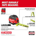 The MILWAUKEE® 25ft STUD™ Tape Measure is the Most Durable Tape in the industry. This tape measure delivers the smoothest retraction in harsh jobsite conditions and the strongest extension through debris while taking measurements on the ground. EXO360™ Rip & Wear Resistant Blade Technology protects your blade on the jobsite, delivering the longest-lasting blade. The fully reinforced impact resistant body and double-sided anti-tear coating on the first 6” of the blade lead to an overall longer life in harsh groundwork conditions. The STUD™ Tape Measure features a hi-visibility blade for legibility in varied jobsite environments. The tape delivers 17' of Reach and 14’ of Standout, allowing you to take long measurements on your own and reach further on the jobsite.