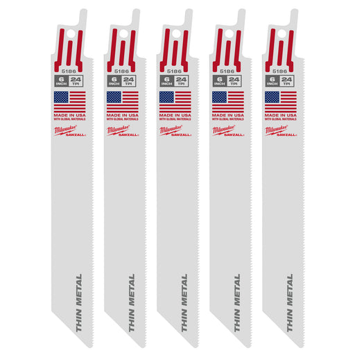 View full detailsMilwaukee 5PK 6" 24 TPI SAWZALL Blade For Thin Metal