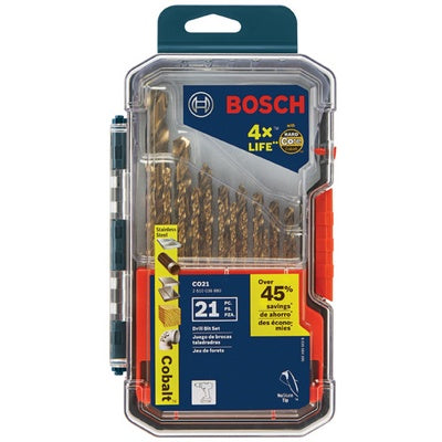 Bosch Cobalt Metal Drill Bits provide 4X longer life than standard high-speed steel drill bits, plus they provide outstanding performance in stainl...