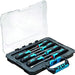 The OX Pro Tough Screwdriver Set with Hard Case - 7Pc comes in an extremely robust, heavy-duty case. Each screwdriver is made from a chrome vanadium steel bar and features a soft grip handle moulded directly to the shaft for maximum strength. Colour-coded handles make it easy to find the right screwdriver for the job. This set includes: Flared 6.5 x 150mm, Parallel 3.5 x 75mm and 5.5 x 125mm, Phillips PH1 x 100mm, PH2 x 125mm, Pozi PZ1 x 100mm, PZ2 x 125mm.