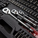 The STANLEY® 201 Piece Professional Mechanics Tool Set is a complete tool set for mechanics that includes ratchets, extension bars, SAE and metric-sized sockets and nut bits, hex keys, combination wrenches and much more. Everything is housed in a rugged carry case.