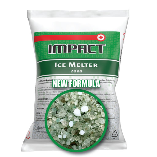 IMPACT ICE MELTER is 100% natural and is made up a propitiatory blend of Sodium, Magnesium Chloride and corrosion inhibiting additives. It is a Pet...