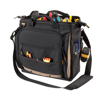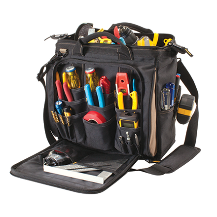 17 Multi-use pockets inside and 6 outside organize tools and accessories. Opens wide for easy access to bag's contents. Reinforced web carrying ha...