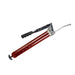 This Alemite 500-E grease gun, which comes with an 18" hose and coupler, has a cylinder capacity of 16 oz., delivers lubricant at pressures up to 10,000 pounds per square inch (psi) at a rate of 1 oz. per 21 strokes, and can load lubricant three ways: 14 oz. cartridge, suction, or fast refill from an Alemite loader pump. A lever mechanism provides standard volume output. This grease gun has a die cast aluminum head for lightweight durability, and the lower portion of its lever has a vinyl cover to make it easier to grip. A bleeder valve keeps the grease gun from building up excessive pressure in the cylinder. This grease gun injects grease into standard grease fittings and is suitable for applications such as lubricating motor vehicles, construction and industrial equipment, and aeronautics. Oil and grease guns are handheld tools that inject lubricant (dispensed from the barrel or cylinder cartridge) into metal mechanical assemblies. Electric and air-powered grease guns can dispense large volumes of lubricant in commercial applications, while battery-powered (cordless) grease guns are more suitable for mobile and remote applications. Manual grease guns (lever, pistol-grip, screw-type, push-type, and suction) vary in duty and have either a rigid or flexible hose extension for attaching nozzles or a nozzle with coupler for standard grease fittings.