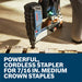 - LED light – illuminates the work area for added accuracyBrushless motor – for efficient power to consistently sink 16-gauge 7/16 in medium crown staples