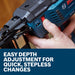- Easy depth adjustment – with ergonomic thumb wheel for quick, stepless changes