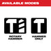 - 2-mode operation for rotary hammer and hammer only