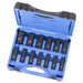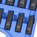 Carefully selected assortment of impact sockets needed for most industrial applications and includes a convenient blow mould case with removable lid for easy storage and organization.