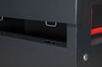 - Three robust shelves that can be put in four different positions, each featuring a cable pass-through point